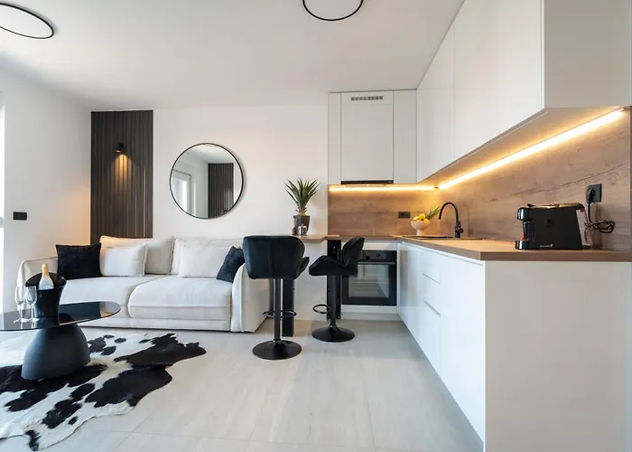 Das 1-Zimmer-Bellamare Brand New Apartment Zadar mit Blick auf die Stadt liegt ungefähr 25 Gehminuten von der Kirche Sv. Donat entfernt. Auch ein beheizter Swimmingpool garantiert einen entspannten Aufenthalt.